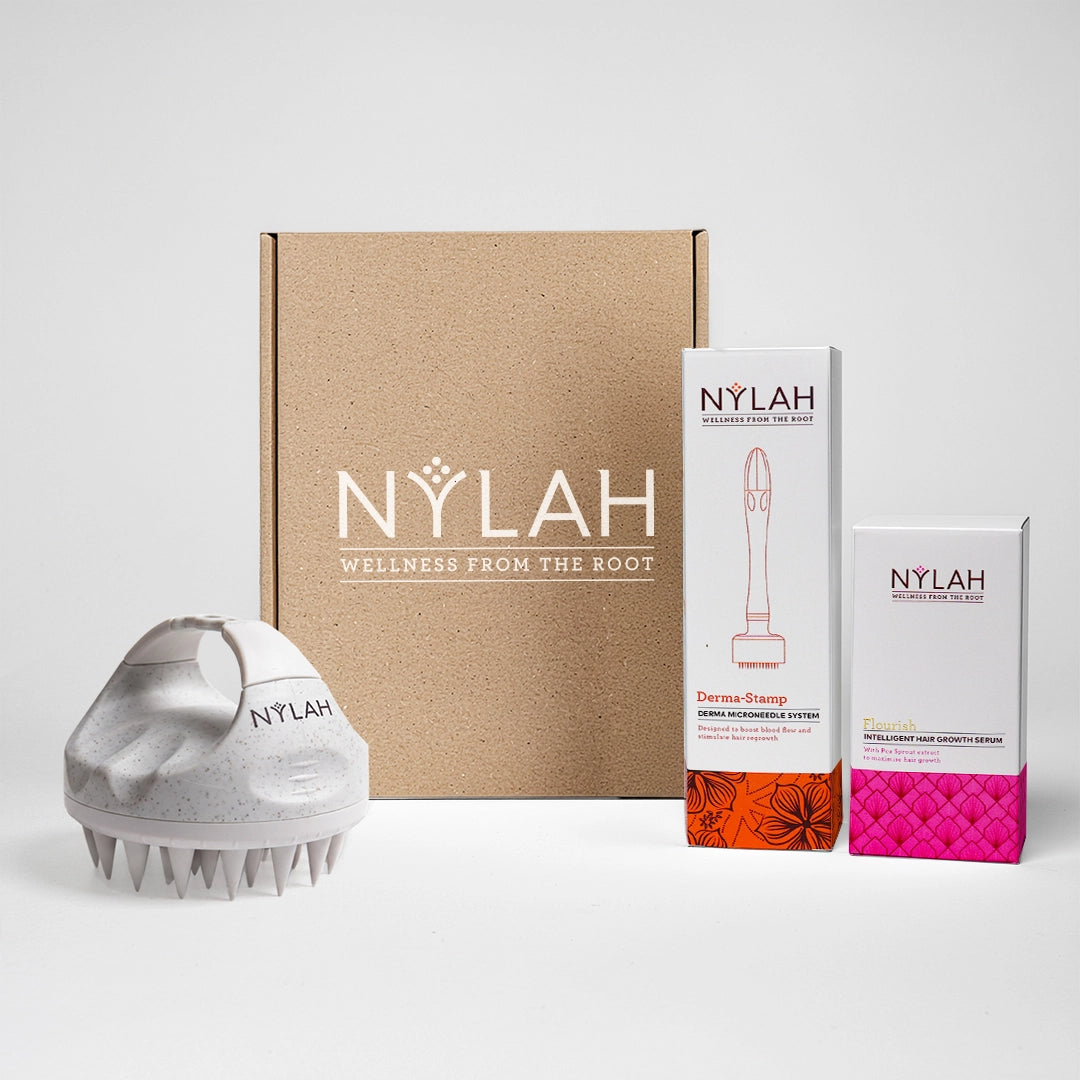 This ready-to-gift bundle combines advanced scalp stimulation with growth support to help soothe irritation, improve circulation, and optimise how your scalp absorbs nutrients. Working together as one routine, the set helps reset the scalp environment, encourages stronger growth cycles, and supports long-term thickness and vitality for your hair.